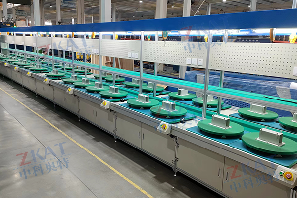 产品详情 倍速链装配生产线 在线咨询 产品详情 倍速链流水线简介 一、适用范围: 该产品主要用于电子、家电、通讯、计算机、线路板、仪表的生产、组装、检测、包装输送等。倍速链流水线常用的行业有:电脑显示器生产线、电脑主机生产线、笔记本电脑装配线、空调生产线、电视机装配线、微波炉装配线、打印机装配线、传真机装配线、音响功放生产线、发动机装配线。适用于电子行业等产品的装配、老化、测试、包装等成套生产线。可在工装板上加装夹具,满足对工件的装配需要。 二、产品类型: 倍速链流水线由动力系统、控制系统、输送链条、工装板、阻断器、灯架照明、风扇、铝型材框架组成,另行配备了独立工作台、电源插座、气路辅助设施。 三、产品说明: 1.倍速链线是以链条作为牵引和承载体输送物料,链条可以采用普通的套筒滚子输送链,也可采用其它各种特种链条; 2.输送能力大,可承载较大的载荷; 3.输送速度准确稳定,能保证同步输送; 4.易于实现积放输送,可用做装配生产线或作为物料的储存输送; 5.可在各种恶劣的环境(高温、粉尘)下工作,性能可靠。 四、倍速链流水线工作原理: 输送原理是运用倍速链条的增速功能,使其上承托货物的工装板快速运行,通过阻挡器停止于相应的操作位置,或通过相应指令来完成积放动作及移行、转位、专线等功能。由于该机运送货物的台板需反复使用,所以很少单台使用,而是与各种专机如顶升平移机,顶升转位机等配套构成水平或垂直循环系统。 五、技术优势: 输送线链条采用三倍速链条,链条滚轮采用工程塑胶,具有耐磨、噪音低等特点,输送工装板时顺畅圆滑,运转时安静无声,平稳传动。依照客户生产制程及厂房空间条件,可为客户量身设计规划,务求合理的设计可为客户节省空间的生产流程。配置升降机接送可以实现双层和多层输送,达到既输送又储存的目的。配置直角横向移栽机,可作平面转向输送,可以使工装板在一个平面内循环输送、循环使用不下线体。工装板上设导电铜板,可实现带电输送,完成调试、老化、检测功能。公司针对客户生产现场需求,参照国内外先进的电子电器生产技术进行优化设计,人性化操作设计,可精简作业人力,更能大大提高生产效率,生产线零部件采用国内外知名品牌产品,确保生产线长时间稳定运行。 六:可选配置: 可根据客户需要来设计制作,线体配置有:日光灯、气管、工具挂钩、工艺卡、仪表台、工作台、插座、工具箱/抽屉等,可由客户随意选择配置;设备价格合理,美观,性能可靠。