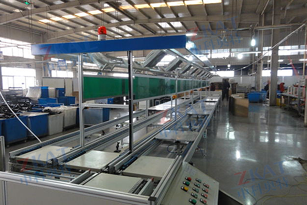 产品详情 三流道倍速链线 在线咨询 产品详情 倍速链流水线简介 一、适用范围: 该产品主要用于电子、家电、通讯、计算机、线路板、仪表的生产、组装、检测、包装输送等。倍速链流水线常用的行业有:电脑显示器生产线、电脑主机生产线、笔记本电脑装配线、空调生产线、电视机装配线、微波炉装配线、打印机装配线、传真机装配线、音响功放生产线、发动机装配线。适用于电子行业等产品的装配、老化、测试、包装等成套生产线。可在工装板上加装夹具,满足对工件的装配需要。 二、产品类型: 倍速链流水线由动力系统、控制系统、输送链条、工装板、阻断器、灯架照明、风扇、铝型材框架组成,另行配备了独立工作台、电源插座、气路辅助设施。 三、产品说明: 1.倍速链线是以链条作为牵引和承载体输送物料,链条可以采用普通的套筒滚子输送链,也可采用其它各种特种链条; 2.输送能力大,可承载较大的载荷; 3.输送速度准确稳定,能保证同步输送; 4.易于实现积放输送,可用做装配生产线或作为物料的储存输送; 5.可在各种恶劣的环境(高温、粉尘)下工作,性能可靠。 四、倍速链流水线工作原理: 输送原理是运用倍速链条的增速功能,使其上承托货物的工装板快速运行,通过阻挡器停止于相应的操作位置,或通过相应指令来完成积放动作及移行、转位、专线等功能。由于该机运送货物的台板需反复使用,所以很少单台使用,而是与各种专机如顶升平移机,顶升转位机等配套构成水平或垂直循环系统。 五、技术优势: 输送线链条采用三倍速链条,链条滚轮采用工程塑胶,具有耐磨、噪音低等特点,输送工装板时顺畅圆滑,运转时安静无声,平稳传动。依照客户生产制程及厂房空间条件,可为客户量身设计规划,务求合理的设计可为客户节省空间的生产流程。配置升降机接送可以实现双层和多层输送,达到既输送又储存的目的。配置直角横向移栽机,可作平面转向输送,可以使工装板在一个平面内循环输送、循环使用不下线体。工装板上设导电铜板,可实现带电输送,完成调试、老化、检测功能。公司针对客户生产现场需求,参照国内外先进的电子电器生产技术进行优化设计,人性化操作设计,可精简作业人力,更能大大提高生产效率,生产线零部件采用国内外知名品牌产品,确保生产线长时间稳定运行。 六:可选配置: 可根据客户需要来设计制作,线体配置有:日光灯、气管、工具挂钩、工艺卡、仪表台、工作台、插座、工具箱/抽屉等,可由客户随意选择配置;设备价格合理,美观,性能可靠。