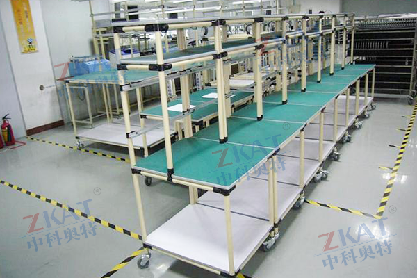 产品详情 精益管移动操作台 在线咨询 产品详情 防静电线棒工作台 防静电线棒也称覆塑管,覆塑管是由钢管经过表面处理后,外表面采用热塑粘合特殊塑料层,内表面覆防腐层组合而成。可组成形式多样的工作器具:如工作台小推车、货架等。配合种类丰富的连接夹具组成产品后,具有外形美观、耐磨、色泽光亮、防锈零污染,是不锈钢产品的理想替代品;特性具有简易性,灵活多变性,可扩展性,可重复使用性,外观以白色、黑色为主。 此类产品广泛使用在家电、汽车、轻工业、电子等行业生产现场。样式可根据客户具体要求定做!