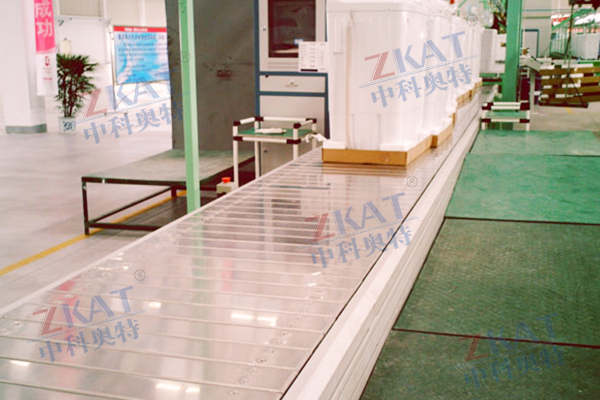 产品详情 电器链板流水线 在线咨询 产品详情 链板线详细介绍 一、适用范围: 链板线广泛应用于电子、家电、计算机、线路板、仪表、家具、服装、汽车、轮胎、冶金、煤炭、化工、电力、食品、饮料等行业的生产、组装、检测、包装输送等,机械制造及国民经济的其他工业部门中也均得到了广泛的应用。 二、产品类型: 链板输送线可承受较大载荷、长距离输送;线体形式为直线、转弯输送;链板宽度可根据客户或实际情况设计。链板形式为直线链板、转弯链板,主体结构材质采用碳钢喷塑或镀锌。 三、产品说明: 链板输送机以标准顶板链为承载面,由马达减速机为动力传动,运行在专用导轨中,根据工艺流程不同,顶板链分为转弯及直线型。其材质为碳钢、不锈钢、热塑链,根据您的产品的需要可选取不同宽度、不同形状的顶板来完成直线、转弯、升降等要求。利用固接在牵引链上的一系列链板在水平或倾斜方向输送物料的输送机,以单片钢板铰接成环带作为运输机的牵引和承载构件,承载面具有横向隔片置于槽箱中,驱动环带借隔片将煤刮运输出。它由驱动机构、张紧装置、牵引链、板条、驱动及改向链轮、机架等部分组成。 四、链板式输送机的特点: 1、适用范围广,除粘度特别大的物料外,一般固态物料和成件物均可用它输送; 2、输送能力大; 3、牵扯引链的强度高,可用作长距离输送; 4、输送线路布置灵活,与网带式输送机相比,链板式输送机可在较大的倾角和较小的弯曲半径的条件下输送,因此布置的灵活性较大。链板式输送机的倾角可达30°-35°,变曲半径一般约为5-8m; 5、在输送过程中可进行分类、干燥、冷却或装配等各种工艺加工; 6、运行平稳可靠。