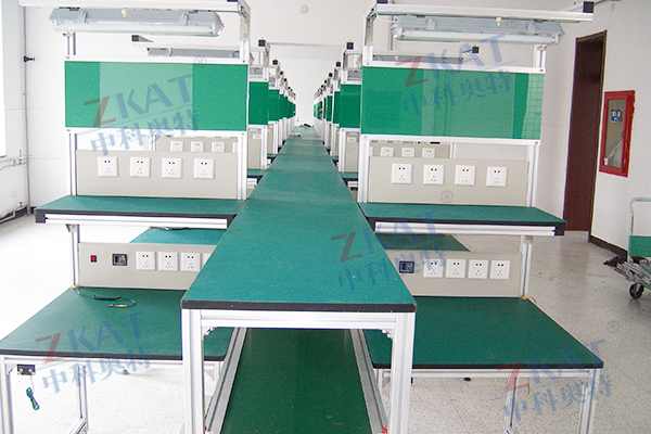 产品详情 飞机式皮带装配线 在线咨询 产品详情 飞机式皮带线产品简介: 一、型号种类: 1、骨架采用:钢材结构、铝材结构: 2、工作台选择方式:飞机台、独立工作台、长条工作台: 3、流道要求:单边流道、双边流道; 4、速度设定:恒速、电磁调速、变频调速; 二、可配置选项: 1、气路管道、日光灯、24V电源、工具挂钩、铝合金滑导、工艺看板、仪表搁板台、带锁抽屉、带锁工具箱、防静电手环插座; 2、工作台面:贴防火板/贴防静电胶皮 三、特点: 本厂生产的皮带运输生产线运输平稳,可按客户要求定制,并有多种皮带可选用(PVC防静电胶皮、橡胶皮带、食品专用皮带等),可广泛应用于电子电器,塑胶,化工,食品等行业。皮带生产线广泛应用于家电、电子、电器、机械、烟草、注塑、邮电、印刷、食品等各行各业,物件的组装、检测、调试、包装及运输等。线体输送可根据工艺要求选用:普通连续运行、节拍运行、变速运行等多种控制方式;线体因地制宜选用:直线、变道、斜坡等线体形式。皮带生产线也叫带式输送机或胶带输送机,是组成有节奏的流水作业线所不可缺少的经济型物流输送设备。皮带机按其输送能力可分为重型皮带机如矿用皮带输送机,轻型皮带机如用在电子塑料,食品轻工,化工医药等行业。皮带输送机具有输送能力强,输送距离远,结构简单易于维护,能方便地实行程序化控制和自动化操作。运用输送带的连续或间歇运动来输送100KG以下的物品或粉状、颗状物品,其运行高速、平稳,噪音低,并可以上下坡传送。 ◎功能及特点: 结构简单、维修方便、外形美观、运行可靠、被广泛应用于电子、家电、食品、汽车、摩托车等行业的零部组装的输送 ◎技术参数: 1.主要输送形式为:长条工作台、独立工作台、单边工作台、双边工作台和无工作台输送形式。 2.驱动的形式有:电机驱动输送形式。 3.皮带常用宽度为:20~2000mm,也可根据客户要求定做。 4.输送带的材质有:不锈钢网带、橡胶带、PVC带、帆布带、食品带等。 5.输送带的形式有:带挡板输送带、带围板、平皮带及防滑带等。 6.工作台板尺寸根据用户需要定制。 7.工作台面有:贴防火板、普通橡胶、防静电橡胶等。 8.线体支架有:不锈钢、铝型材、铁管喷塑等。 9.输送速度一般为0.1~10M/min;也可根据用户需要采用调速或定速。 10.调速有:变频调速、电磁调速、电子调速、机械调速等。 具体定做方案请和我公司销售工程师沟通!