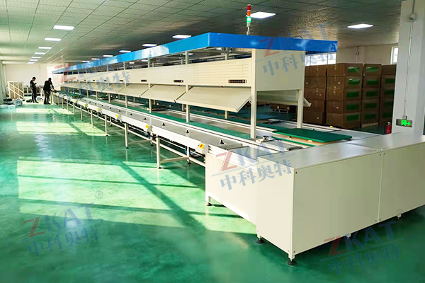 输送线链条采用三倍速链条,链条滚轮采用工程塑胶,具有耐磨、噪音低等特点,输送工装板时顺畅圆滑,运转时安静无声,平稳传动。依照客户生产制程及厂房空间条件,可为客户量身设计规划,务求合理的设计可为客户节省空间的同时达到优良的生产流程。配置升降机接送可以实现双层和多层输送,达到既输送又储存的目的。配置直角横向移栽机,可作平面转向输送,可以使工装板在一个平面内来回输送、使用不下线体。工装板上设导电铜板,可实现带电输送,完成调试、老化、检测功能。公司针对客户生产现场需求,参照国内外先进的电子电器生产技术进行优化设计,人性化操作设计,可精简作业人力,更能大大提高生产效率,生产线零部件采用国内外先进产品,确保生产线长时间稳定运行。