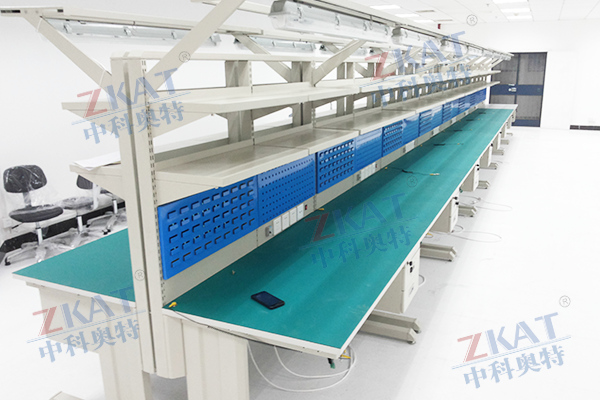 产品详情 工作台组装线 在线咨询 产品详情 工作台产品简介: 一、工作台特点: 1.工作台支撑+后挡板+前梁为组合式,全钢架体,拼装结构,安装方便,功能齐全,坚固耐用。 2.使用灵活,用户只要按实际需要选取合适的工作台附件自由组合配置,即能得到需要的功能。 3.工作台高度可调节,以适应不同人群和生产需要,工作台标准高度为750mm 二、工作台组成: 1.工作台支撑. 2.工作台台面:A--防静电防火板; B--密度板铺设防静电橡胶板(台面具有防静电、耐高温和耐磨性) 3.带冲孔的管状支架 4.普通钢质搁板+支架 5.照明灯/吊钩滑轨 6.电源插座+安装挂钩 7.抽屉+抽屉固定支架(可配置多屉吊柜,推拉柜) 8.手环插座 9.照明灯 10仪表台(可选用和台面材质相同,尺寸自定)。 三、工作台防静电性能: 台面对地电阻(Ω):106-109 均匀承载,静载荷:500kg,动载荷:300kg 四、工作台规格: 1.可按用户要求制作. 2.常用规格: 工作台支撑(mm)1200*550,1500*750,1800*750 工作台台面(mm)120*600,1500*750,1800*750,1800*900,2000*900