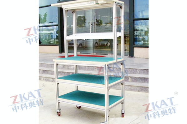 产品详情 移动式防静电工作台 在线咨询 产品详情 工作台产品简介: 一、工作台特点: 1.工作台支撑+后挡板+前梁为组合式,全钢架体,拼装结构,安装方便,功能齐全,坚固耐用。 2.使用灵活,用户只要按实际需要选取合适的工作台附件自由组合配置,即能得到需要的功能。 3.工作台高度可调节,以适应不同人群和生产需要,工作台标准高度为750mm 二、工作台组成: 1.工作台支撑. 2.工作台台面:A--防静电防火板; B--密度板铺设防静电橡胶板(台面具有防静电、耐高温和耐磨性) 3.带冲孔的管状支架 4.普通钢质搁板+支架 5.照明灯/吊钩滑轨 6.电源插座+安装挂钩 7.抽屉+抽屉固定支架(可配置多屉吊柜,推拉柜) 8.手环插座 9.照明灯 10仪表台(可选用和台面材质相同,尺寸自定)。 三、工作台防静电性能: 台面对地电阻(Ω):106-109 均匀承载,静载荷:500kg,动载荷:300kg 四、工作台规格: 1.可按用户要求制作. 2.常用规格: 工作台支撑(mm)1200*550,1500*750,1800*750 工作台台面(mm)120*600,1500*750,1800*750,1800*900,2000*900