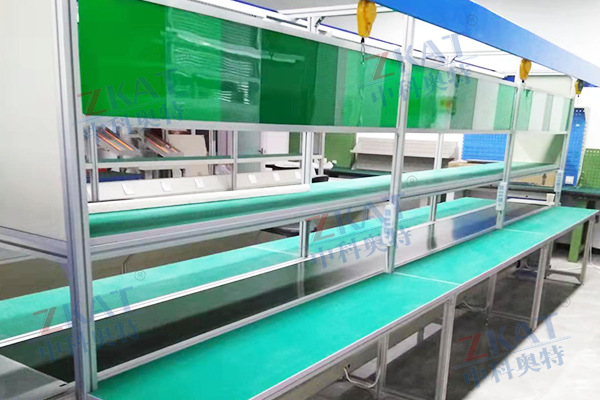产品详情 双边长条皮带线 在线咨询 产品详情 双边长条流水生产线产品简介: 一、型号种类: 1、骨架采用:钢材结构、铝材结构 2、工作台选择方式:飞机台、独立工作台、长条工作台 3、流道要求:单边流道、双边流道 4、速度设定:恒速、电磁调速、变频调速; 二、可配置选项: 1、气路管道、日光灯、24V电源、工具挂钩、铝合金滑导、工艺看板、仪表搁板台、带锁抽屉、带锁工具箱、防静电手环插座; 2、工作台面:贴防火板/贴防静电胶皮 三、特点: 本厂生产的皮带生产线运输平稳,可按客户要求定制,并有多种皮带可选用(PVC防静电胶皮、橡胶皮带、食品专用皮带等),可广泛应用于电子电器,塑胶,化工,食品等行业。 皮带生产线广泛应用于家电、电子、电器、机械、烟草、注塑、邮电、印刷、食品等各行各业,物件的组装、检测、调试、包装及运输等。线体输送可根据工艺要求选用:普通连续运行、节拍运行、变速运行等多种控制方式;线体因地制宜选用:直线、变道、斜坡等线体形式。 皮带生产线也叫带式输送机或胶带输送机,是组成有节奏的流水作业线所不可缺少的经济型物流输送设备。皮带机按其输送能力可分为重型皮带机如矿用皮带输送机,轻型皮带机如用在电子塑料,食品轻工,化工医药等行业。皮带输送机具有输送能力强,输送距离远,结构简单易于维护,能方便地实行程序化控制和自动化操作。运用输送带的连续或间歇运动来输送100KG以下的物品或粉状、颗状物品,其运行高速、平稳,噪音低,并可以上下坡传送。 ◎功能及特点: 结构简单、维修方便、外形美观、运行可靠、被广泛应用于电子、家电、食品、汽车、摩托车等行业的零部件组装的输送。 ◎技术参数: 1.主要输送形式为:长条工作台、独立工作台、单边工作台、双边工作台和无工作台输送形式。 2.驱动的形式有:电机驱动输送形式。 3.皮带常用宽度为:20~2000mm,也可根据客户要求定做。 4.输送带的材质有:不锈钢网带、橡胶带、PVC带、帆布带、食品带等。 5.输送带的形式有:带挡板输送带、带围板、平皮带及防滑带等。 6.工作台板尺寸根据用户需要定制。 7.工作台面有:贴防火板、普通橡胶、防静电橡胶等。 8.线体支架有:不锈钢、铝型材、铁管喷塑等。 9.输送速度一般为0.1~10M/min;也可根据用户需要采用调速或定速。 10.调速有:变频调速、电磁调速、电子调速、机械调速等。 具体定做方案请和我公司销售工程师沟通!